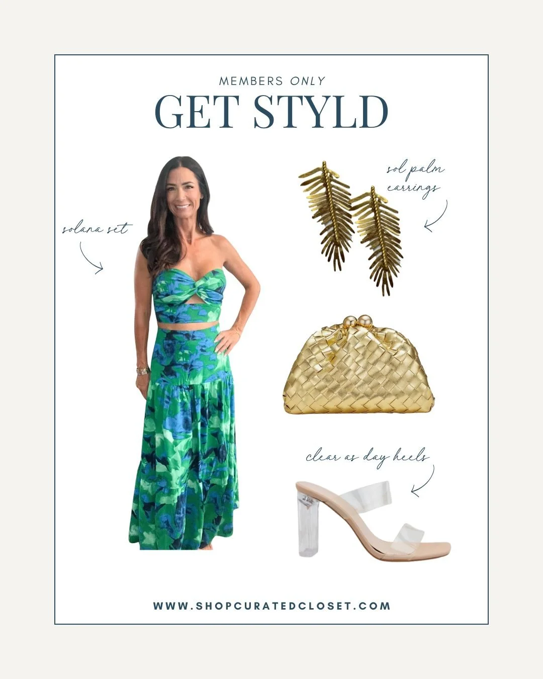 July - Look Two Jul 10 Written By Jennie Stehli Shop the full look at 25% off and receive free shipping on orders $100+Solana Set · Sol Palm Earrings · clear as day heels Jennie Stehli